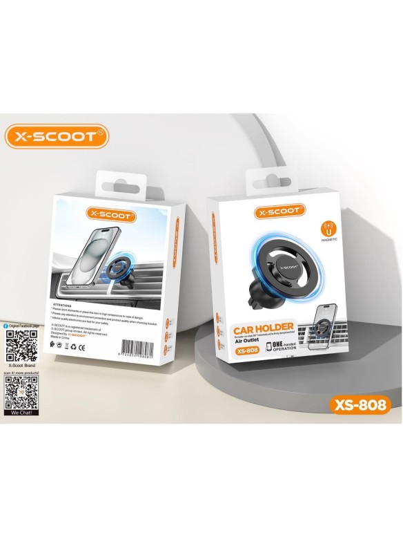 النوع: حامل هاتف مغناطيسي لفتحة تهوية السيارة (Car Air Vent Phone Holder).موديل المنتج: XS-808.الدوران: دوران كامل بزاوية \(360\) درجة.التصميم: تصميم عمودي (Vertical).التركيب: يتم توصيل القدم مباشرة بفتحة تهوية السيارة.الاستخدام: مغناطيس قوي لامتصاص وتثبيت الهاتف.التوافق: مناسب لمعظم الهواتف الذكية