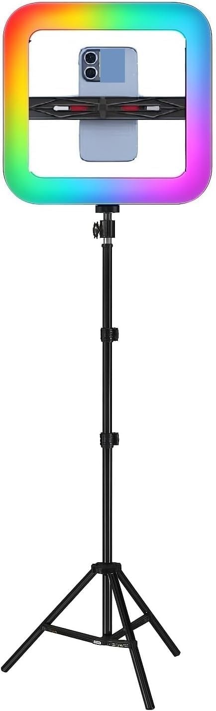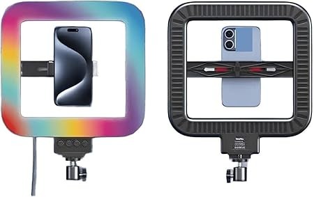 مصباح حلقي مربع MJ-28 RGB من نيفو - ثلاثي الالوان مع تقنية اتش اس اي، دوران 360 درجة، اضاءة ناعمة خالية من الوميض للتصوير الفوتوغرافي والمكياج والبث المباشر وابتكار المحتوى